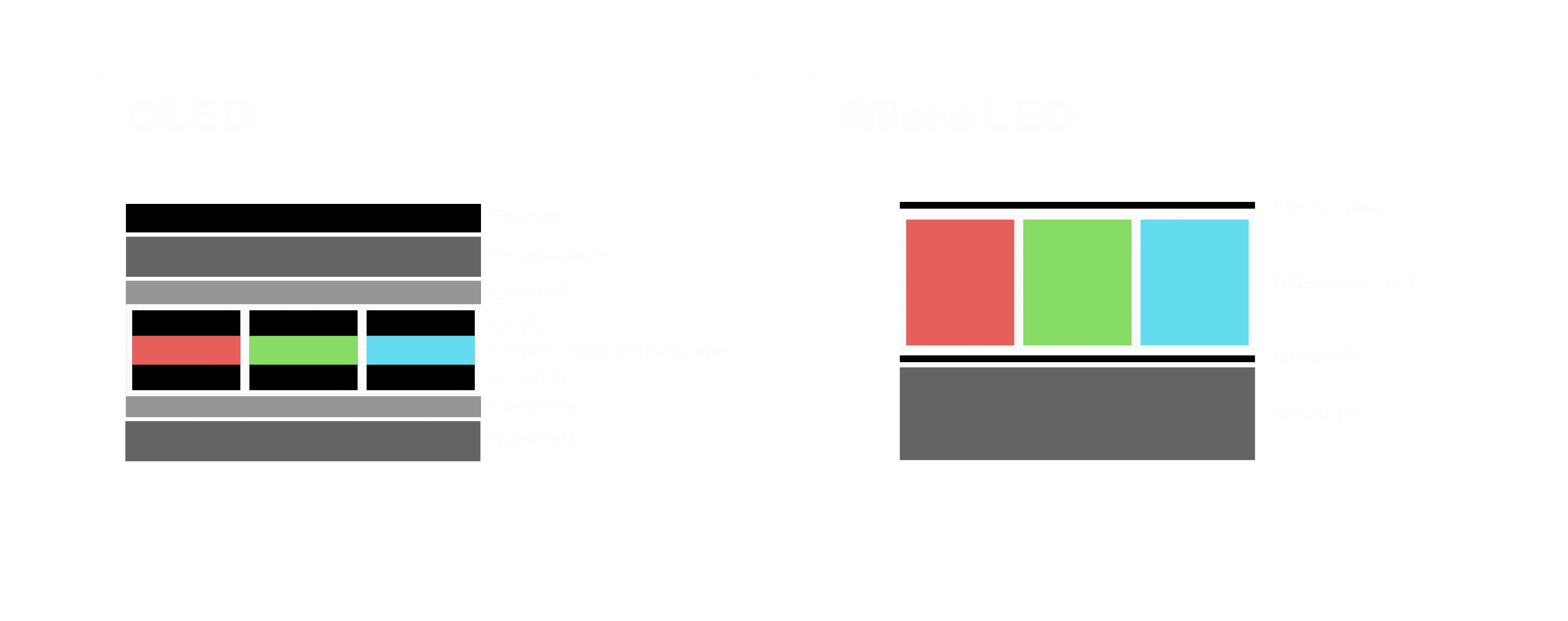 以 LED 做为显示画素,,可让 LED 的发光效率发挥到极致,,,,从而让显示器具备优异的亮度表现,,不论是在户外或室内,,均具备出众的显示效果。。。同时,,,与使用有机材料的 OLED 相比,,,,LED 具备更稳定、、寿命更长的特性,,不仅不会有画面烙印问题,,,,而且更不容易出现故障、、、、坏点。。。。